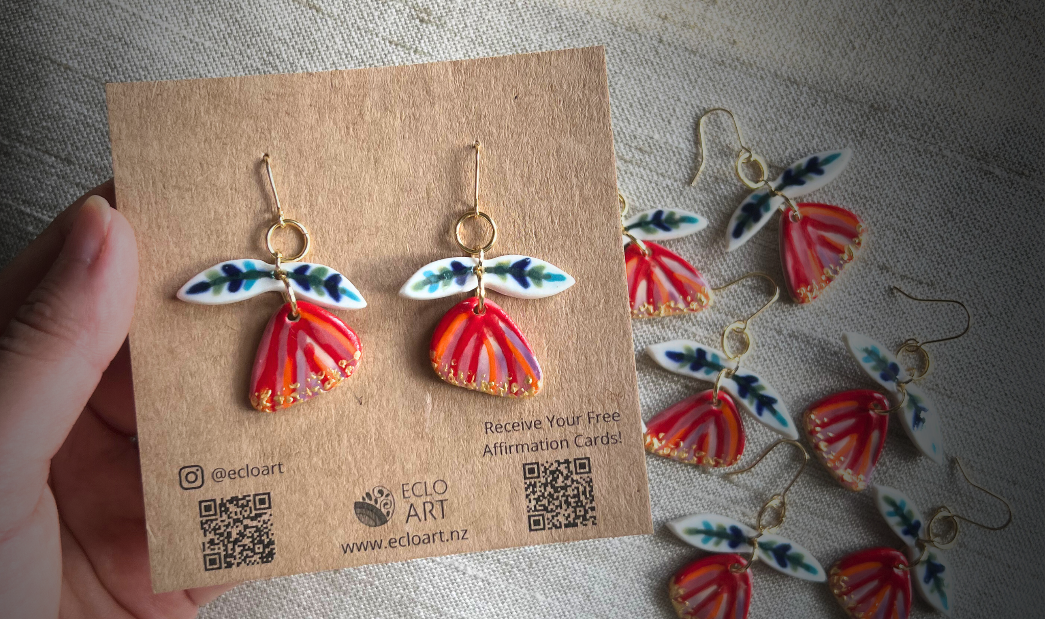 Meri Kirihimete in a Pohutukawa Flower Original Clay Art Piece